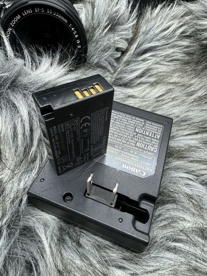 The Canon EOS 77D is a versatile 24.2 MP Digital SLR Camera, perfect for both beginners and enthusiasts. This package includes the EF-S 18-55mm lens and the EF-S 55-250mm f/4-5.6 IS lens, offering a wide range of focal lengths for various photography needs. The camera is in good condition, fully tested, and all functions are working perfectly. It comes with the original battery and charger (1 battery only).